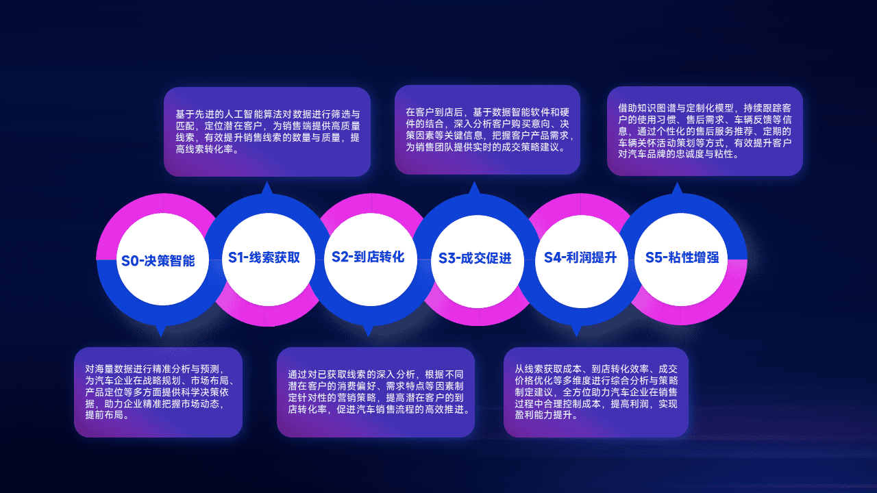 通过拓宽潜在客户来源、、、、优化线索分配并提高到店转化率,,以增强销售效率。。同时,,利用线索数据不断优化分析模型,,,,有效提升转化率,,扩大营销影响力。。。